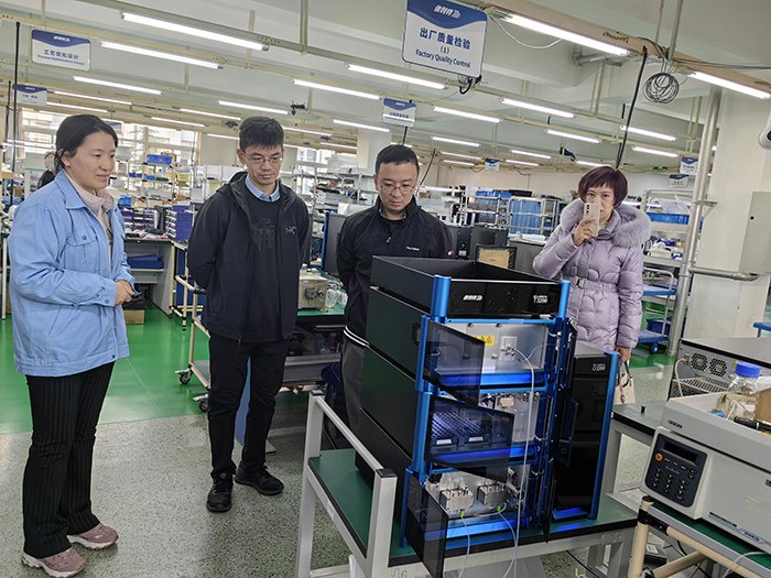 隨后,專家一行參觀了EClassical 3200L系列超高效液相色譜儀。在深入了解產(chǎn)品技術(shù)參數(shù)與性能表現(xiàn)后,專家們再次對我司產(chǎn)品比肩進(jìn)口設(shè)備的品質(zhì)表示認(rèn)可。