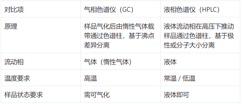 兩者在一些基本要素上是相通的,像保留值、塔板數(shù)、塔板高度、分離度、選擇性等;基礎(chǔ)理論方面,塔板理論與速率方程也大致相同。不過(guò),氣相色譜儀用氣體作為流動(dòng)相,液相色譜儀則用液體作為流動(dòng)相,而液體和氣體的特性存在差異,再加上兩者使用的實(shí)驗(yàn)儀器和操作條件也不一樣,所以它們之間存在不少區(qū)別,主要體現(xiàn)在以下幾個(gè)方面: