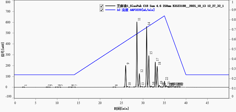 芝麻油作為一種常見的食用植物油和藥物輔料,其質(zhì)量和成分分析尤為重要。甘油三酯是芝麻油的主要成分,其組成直接影響油的營養(yǎng)價值、穩(wěn)定性和應(yīng)用性能。本文將介紹如何使用高效液相色譜法結(jié)合蒸發(fā)光散射檢測器(HPLC-ELSD)對芝麻油中的甘油三酯進行分析,并對比國家標準GB/T 44614-2024《糧油檢驗,植物油中甘油三酯組成的測定,高效液相色譜法》與2025版《中國藥典》中芝麻油標準的分析方法。